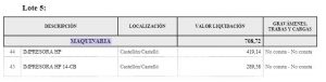 – La venta en subasta pública de los bienes objeto de subasta se realizará en todo caso libre de cargas y gravámenes. Los bienes objeto de subasta se enajenarán por lotes, y son los que se detalla a continuación: